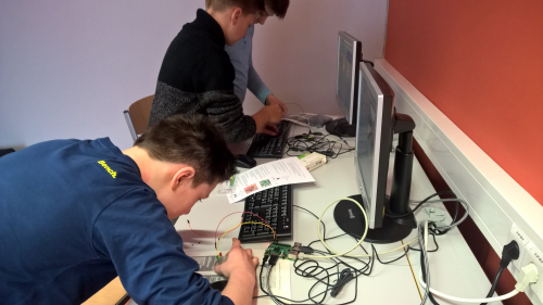 Der Raspberry Pi ist ein scheckkartengroßer Einplatinencomputer, der speziell zum Experimentieren und Basteln entwickelt wurde. Bei der Beschäftigung mit dem Raspi lernen wir Einiges über die Funktionsweise von Computern und das Betriebssystem Linux. Wir programmieren mit Scratch und Phython. Dabei entstehen kleine Spiele und außerdem ist es uns auch gelungen, Leuchtdioden über den Raspi mittels Scratch anzusteuern und Lauflichter, Ampelschaltungen und Reaktionsspiele zu programmieren.