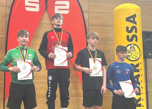 Der 14-jährige Luis Nothard, der sich allein sechsmal den Titel sichern konnte. Er gewann jede einzelne Disziplin (500 m, 1000 m, 1500 m und Massenstart) und folgerichtig auch den Mehrkampf der Altersklasse C1. abschließend holte er gemeinsam mit unserem Nils Schubert, Hermann Friedrich Hermkes (Dresden) und Tillmann Müller (Mylau) zudem Staffelgold.